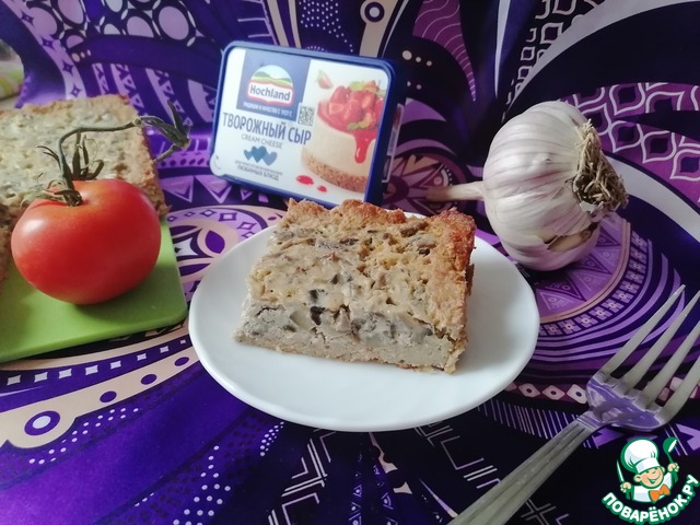 Необычный пирог без теста с корзинкой из фарша и нежной начинкой из грибов, творожного сыра и яйца прекрасно подойдет для сытного ужина