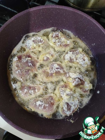 Взбить яйца, обмакнуть кусочки мяса, обвалять в муке, обжарить на растительном масле с двух сторон до золотистой корочки. Огонь средний