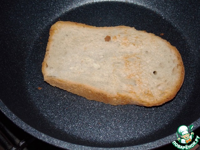 Ломтик белого хлеба поджарить на сухой, разогретой сковороде до легкого хруста.