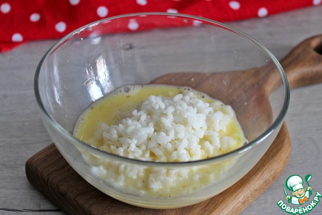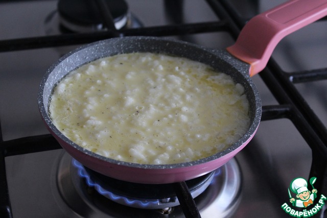 На сковороде растопить сливочное масло, выложить рисово – яичную массу. Готовить до готовности на умеренном огне.