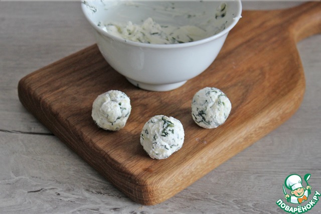 Из сырной массы сформировать небольшие шарики массой около 8 грамм.