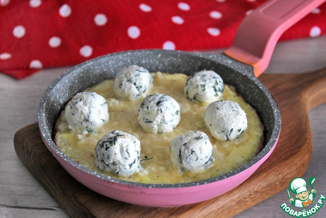 Помните, как в фильме «Одиноким предоставляется общежитие» герой жаловался: «На завтрак яичница, в обед яичница, на ужин амлет…». Мне кажется, что если б, ему приготовили вот такой омлет на ужин, он бы не жаловался. Казалось бы, просто яйца, просто рис, немного зелени и специй, творожный сыр — ничего особенного. Но из этих ингредиентов получается оригинальное блюдо – рис в нежной яичной заливке отлично гармонирует с пикантными шариками из творожного сыра, зелени и чеснока. Просто, вкусно и очень сытно!