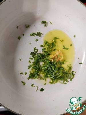 На глубокой сковороде обжарить в оливковом масле лук и чеснок.