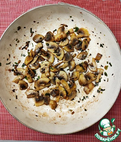Нарезать грибы достаточно крупно, обжарить немного вместе с луком.
