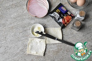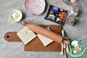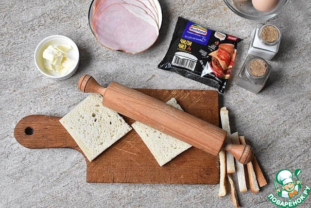 1. Обрежьте у хлеба корочки и слегка раскатайте мякиш.