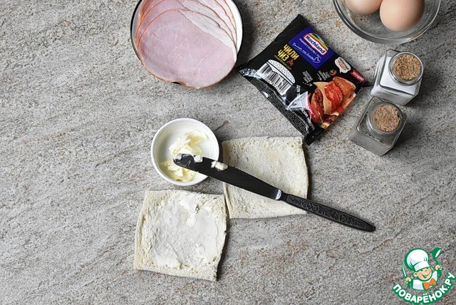 - Хлеб (тостовый пшеничный) — 2 ломт.