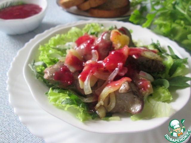 Рецепт «Салат с куриной печенью под брусничным соусом»: