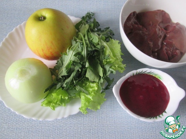 Ингредиенты для «Салат с куриной печенью под брусничным соусом»: