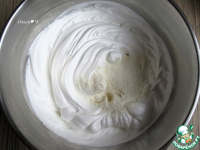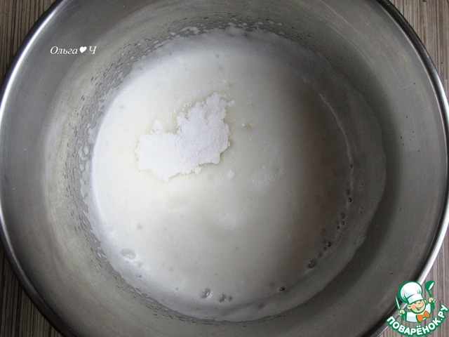 К холодным белкам добавьте лимонную кислоту и соль. Взбейте до мягких волн.