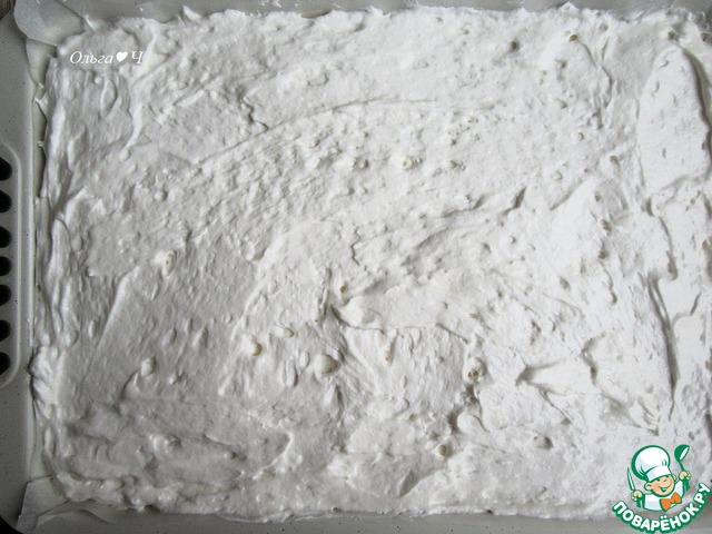 Постепенно всыпая сахарную пудру, смешанную с ванилином, взбейте до устойчивых волн.