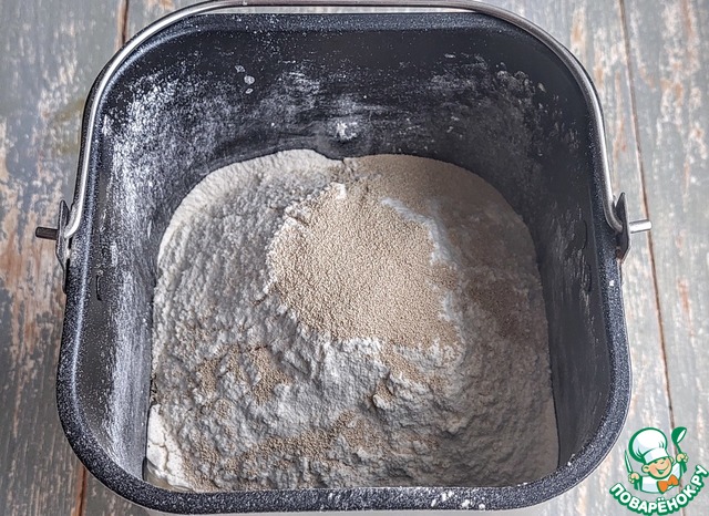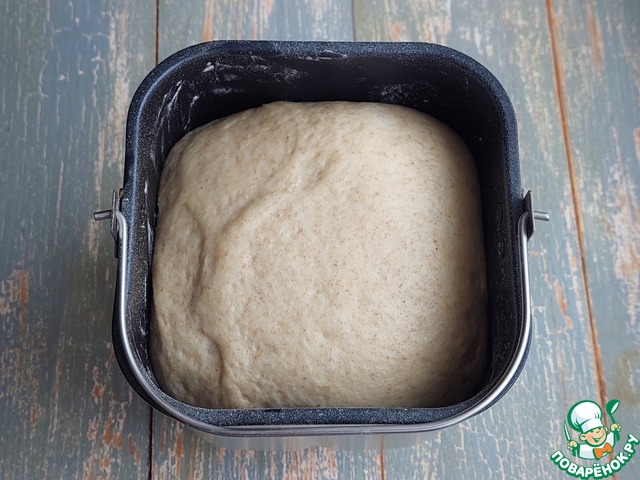 Замесить тесто. Оставить тесто в теплом месте на 30-40 мин. для увеличения в объёме, я оставляю в хлебопечке.