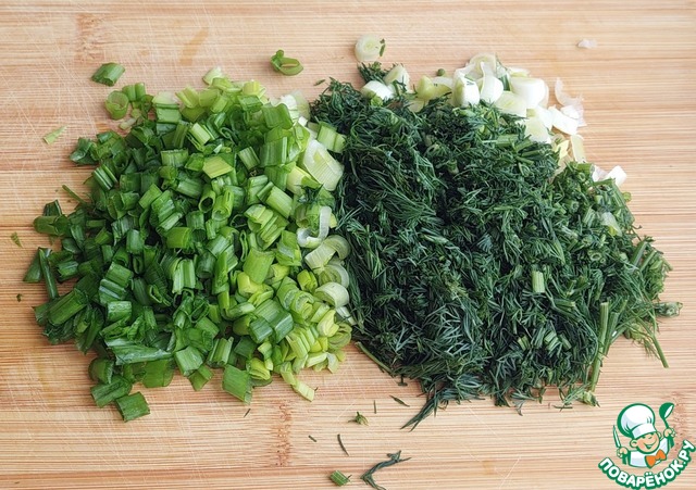 Лук и укроп промыть, обсушить, мелко нарезать.