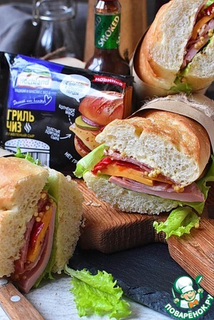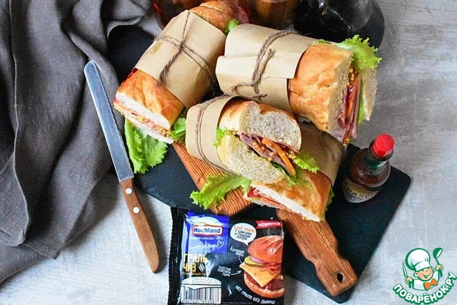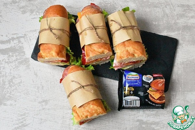 Вроде все задания выполнены. Можно и отдыхать … но осталось еще немного сыров Хохланд. Собрались в город по делам, надо бы перекус прихватить. Младший сын, ветеран конкурсного движения, практически выросший с привычкой спрашивать: «Уже сфотала, есть можно?» - ехидно осведомился, типа что, можно просто съесть все, что осталось? Ну, сам напросился! Конечно, не просто! Соберем все и сразу в боооольшие сочные и яркие сендвичи. Добавим вкуса и аромата с новинкой от Хохланд – сыром гриль-чиз!