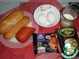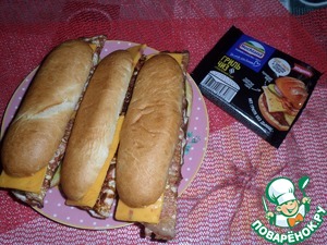 Подготовим продукты. Бутерброды я буду готовить, используя булочки для хот-догов. Можно использовать 1 багет, разрезав его на 3 части.