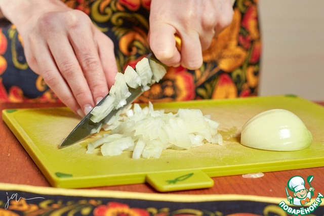 Лук нарезать мелкими кубиками.
