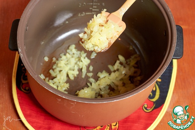 Обжарить на сливочном масле до прозрачности.