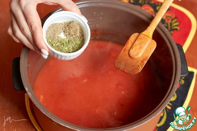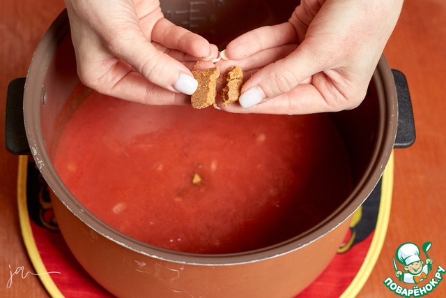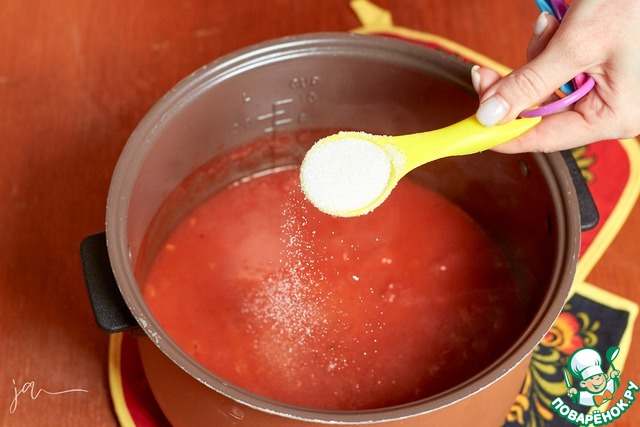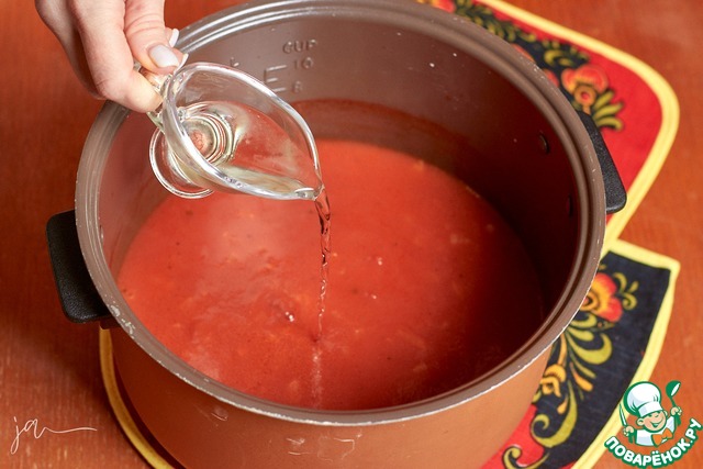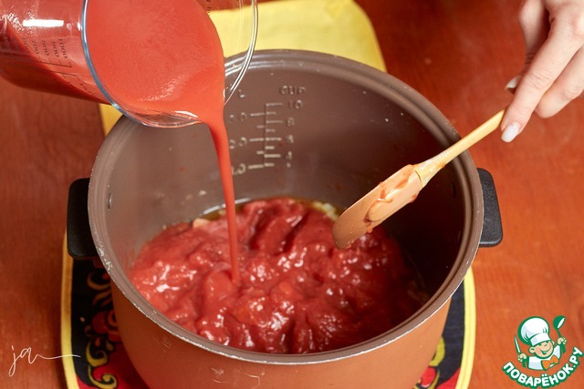 Выложить туда помидоры, влить томатный сок. В идеале, если он будет без соли, такой продается.