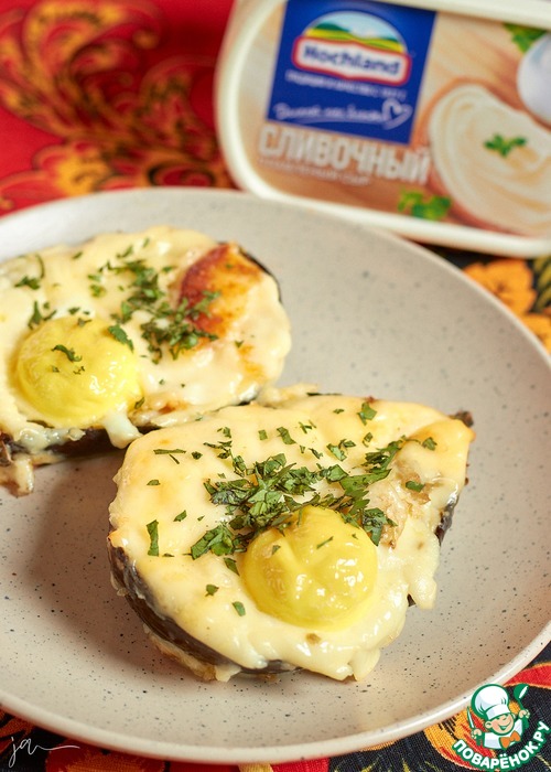 Увидела в магазине очаровательные маленькие баклажаны. Не смогла пройти мимо и взяла, чтобы приготовить на ужин. Получилось вкусное и легкое блюдо. При этом сытное, благодаря яйцу и плавленому сыру Hochland сливочный.