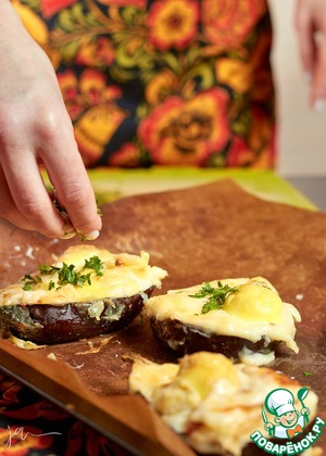 • Выложить в баклажановые лодочки плавленый сыр Hochland сливочный.