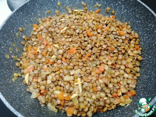 Перемешивать часто не надо (1-2 раза), чтобы сохранить целостность чечевицы.