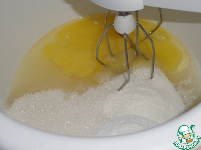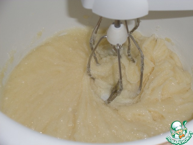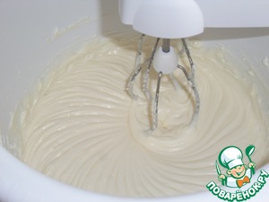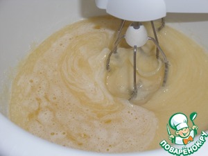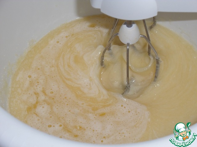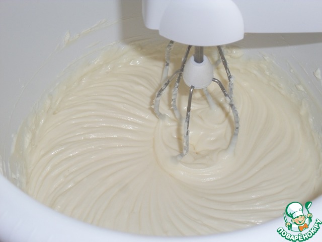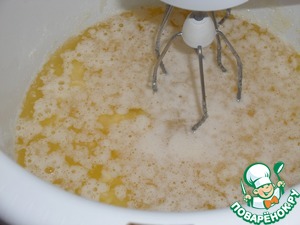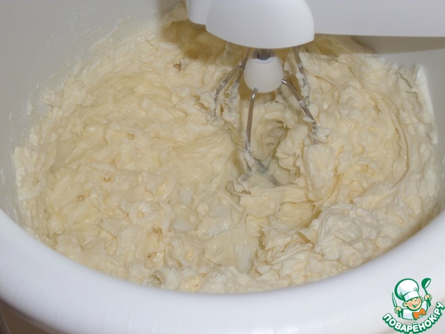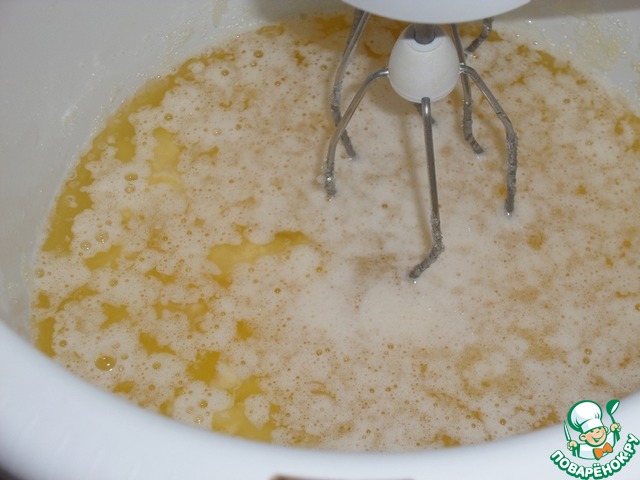Взбиваем смесь 2-3 минуты. Сливочное масло растапливаем и остужаем.
