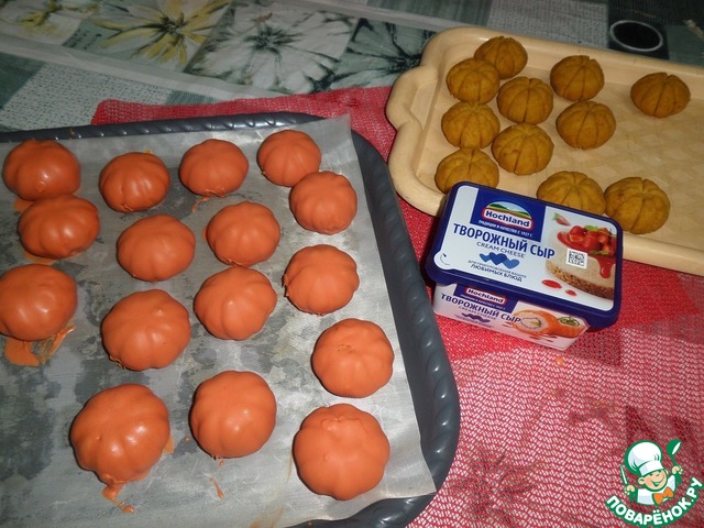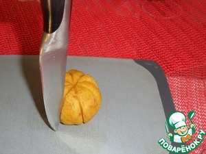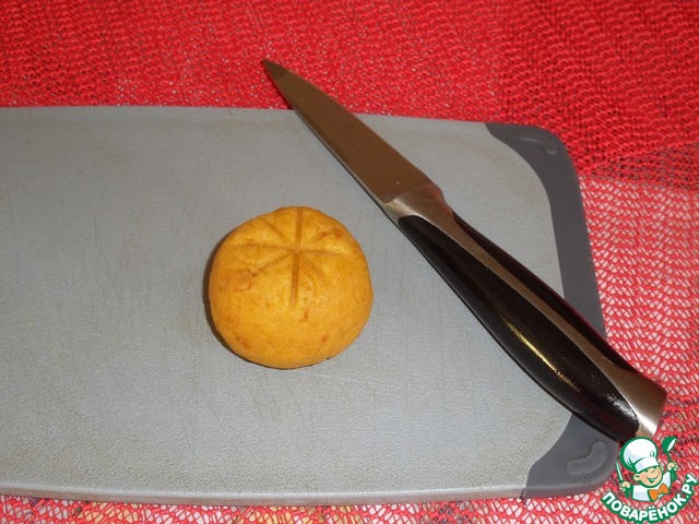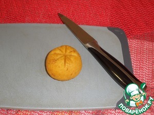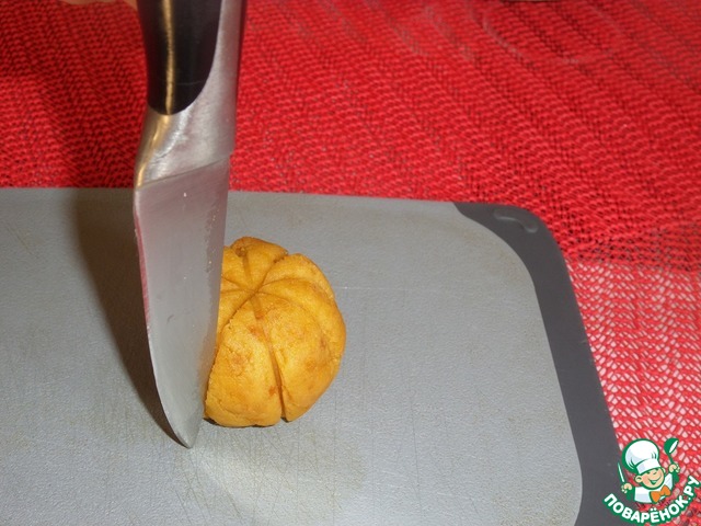 Затем с помощью ножа придаем каждому шарику форму тыквы.