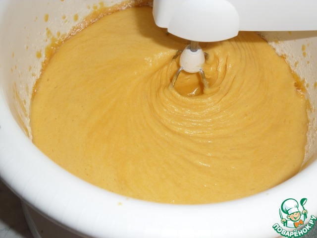Тыквенное тесто выливаем в форму для выпечки. Отправляем в разогретую духовку.