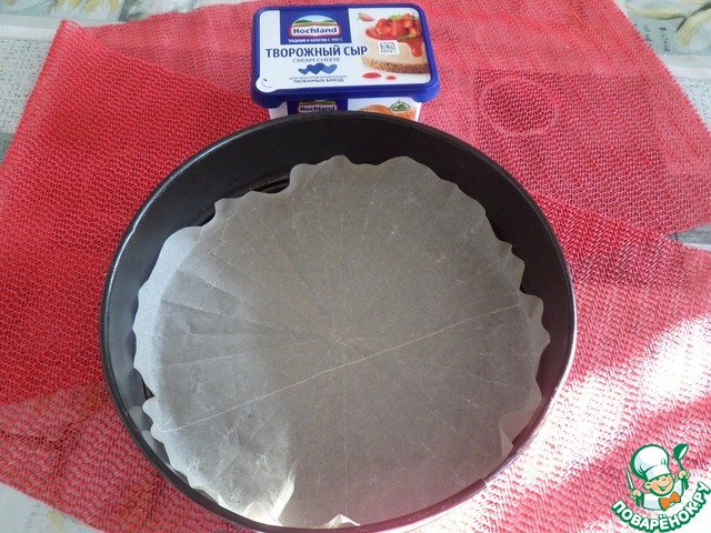 Форму для выпечки застилаем пергаментом. Я использую форму диаметром 24 см.