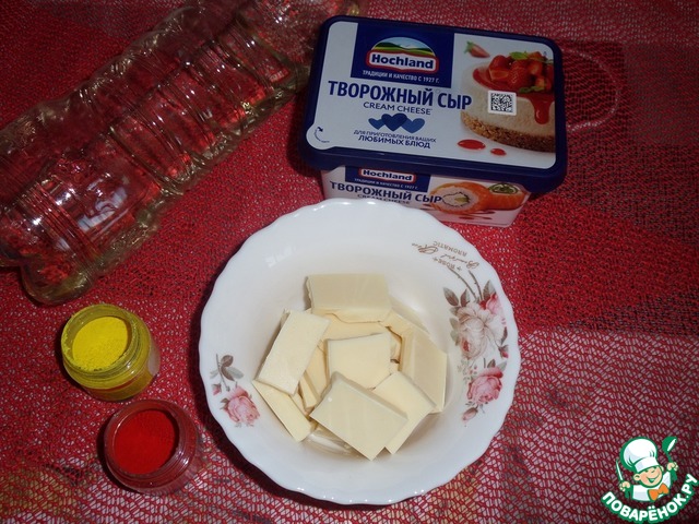 Затем добавляем пищевой краситель. Для получения оранжевого цвета я использовала желтый и красный жирорастворимый краситель.
