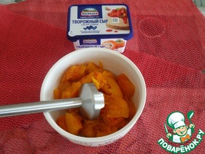 С помощью блендера готовим тыквенное пюре. У меня получилось 420 гр. тыквенного пюре.