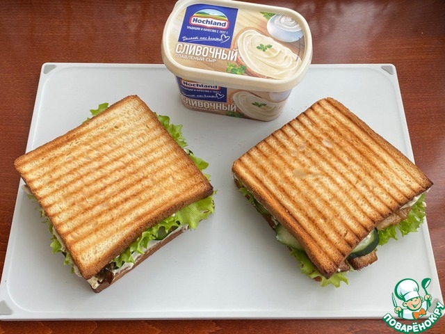Соедините по две части тостов. Слегка придавите сэндвич.