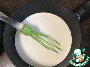 Молоко, сливки, яичный желток и муку хорошо смешать венчиком.