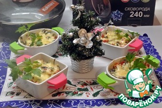 Шампиньон нарезать пластинками по числу порций, сохраняя "силуэт" гриба.