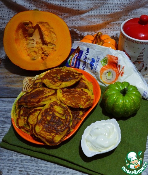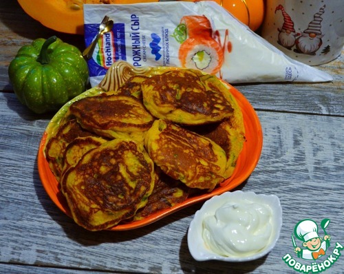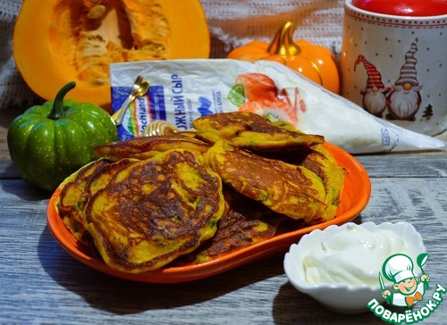 Рецепт «Тыквенно-шпинатные оладьи на творожном сыре»: