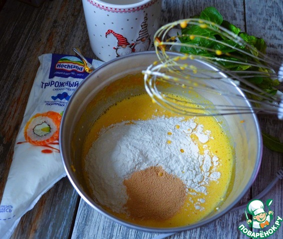 • Добавить просеянную муку, дрожжи, замесить тесто.