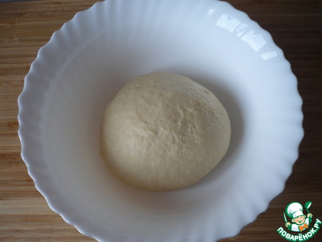 Накройте тесто пищевой пленкой и поставьте в теплое место для подъема на 40 минут.