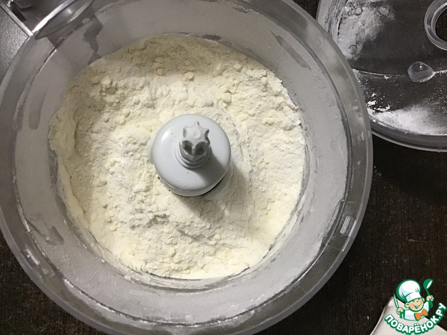 В процессор или чашу миксера просеять муку, добавить соль, разрыхлитель, сахар, размягченное при комнатной температуре сливочное масло и перемешать. -