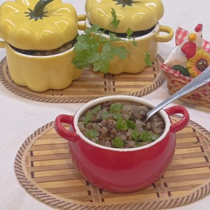 Глиняная посуда обладает уникальными свойствами: стенки горшочков прогреваются равномерно, благодаря чему приготовленные в них блюда отличаются нежной консистенцией и сохраняют витамины. Возможно, кто-то захочет для большего аромата поджарить лук и грибы (вероятно, с шампиньонами так и надо). Это дело вкуса. Но мне понравился именно такой, чистый, без жарки, вариант. Все нежно и гармонично. Сытно, но не тяжело. Отличное блюдо в пост. Рецепт рассчитан на 6 горшочков-порций. На собственном опыте установила, что надо брать горшочки объемом не меньше 400-500 мл и заполняйте их, оставляя сверху не менее 3 см, чтобы при кипении ничего не выбежало. У меня были лесные замороженные грибы. Если берете сухие, то, думаю, пары хороших горстей будет достаточно. Отварите их, а бульон используйте вместо воды.