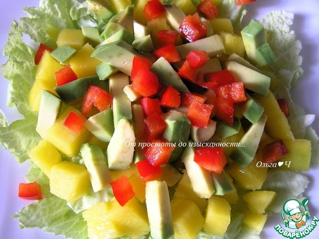 Очень вкусный, витаминный, освежающий, легкий и яркий салат с манго, авокадо и сладким перцем в пикантной заправке. Попробуйте!