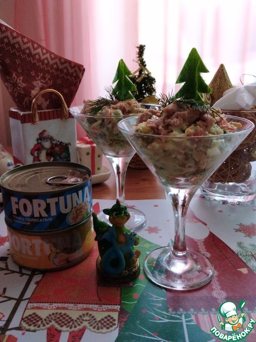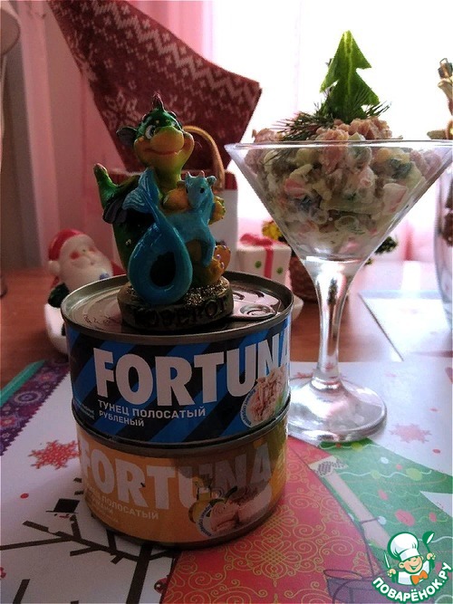 Символ предстоящего 2024 года по восточному календарю - Зеленый Деревянный Дракон. Считается, что в новогодний праздник важно вести себя так, чтобы порадовать его покровителя. Например, накрывая праздничный стол, лучше отказаться от блюд, которые, согласно поверьям, ему не нравятся. Дракон любит рыбу и морепродукты. Приготовим ему Оливье с тунцом!