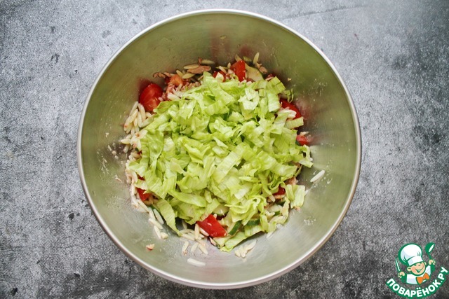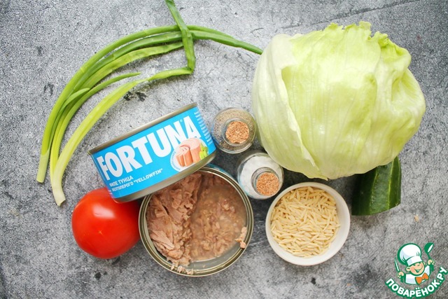 Подготовьте все необходимые ингредиенты для приготовления салата с орзони и тунцом, Овощи и айсберг вымойте и обсушите.