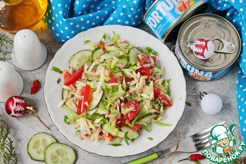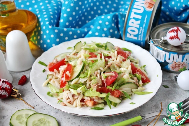 Если хотите удивить гостей за праздничным столом, приготовьте легкий и в то же самое время сытный салат. И возьмем для него не просто обычные макароны, а пасту орзони, которая напоминает по внешнему виду рис. А консервированный тунец и заправка из его заливки сделает салат просто восхитительным.