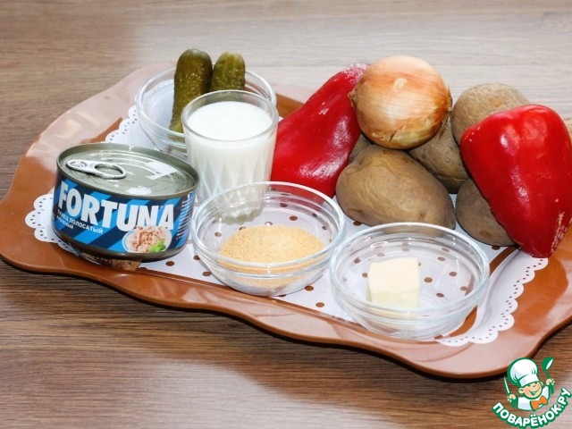 Ингредиенты для «Картофельный рулет с консервированным тунцом»: