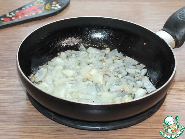 5. Лук обжариваем на разогретом растительном масле до прозрачности.