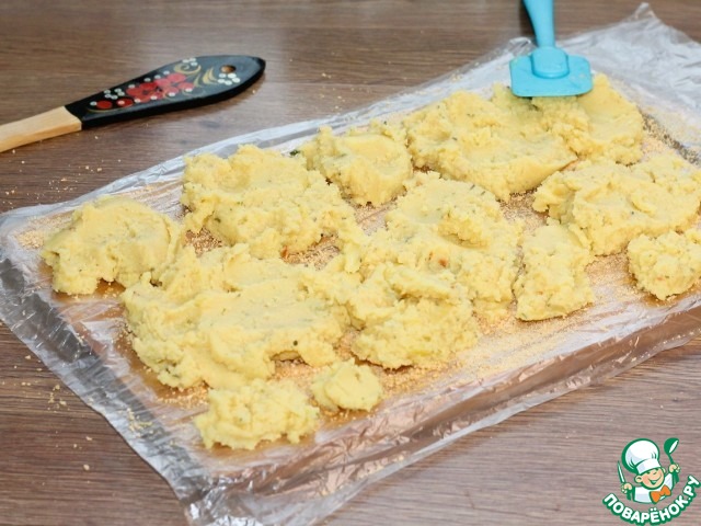 10. На сухари выкладываем картофельное тесто...