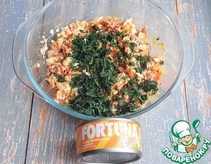 Укроп промыть, обсушить, мелко нарезать. Всё хорошо перемешать. Начинка готова.