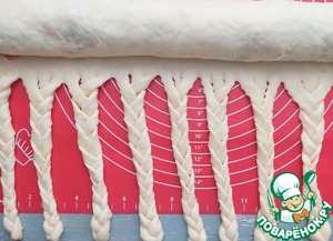 Далее продолжить заворачивать рулет прямо на косички и сформировать круг. Смазать рулет взбитым желтком с 1 ч. л. молока, ещё я посыпала пирог-рулет копчёной паприкой, прованскими травами и кунжутом.