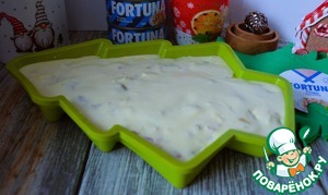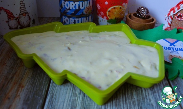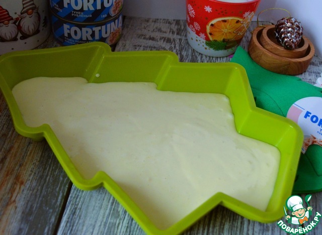 Приготовить форму, 1-1,5 л.. Вылить в неё чуть больше половины теста.