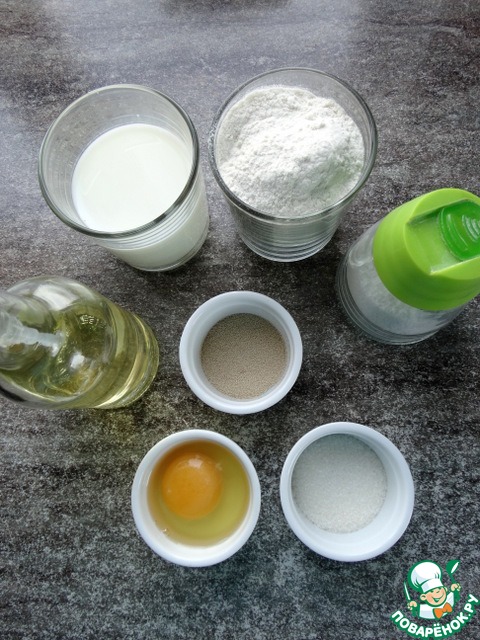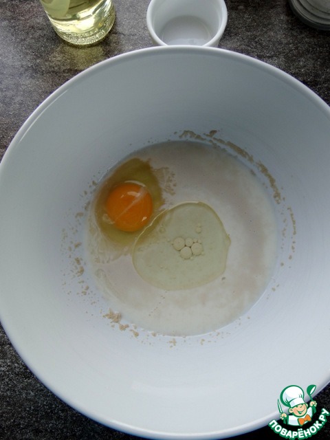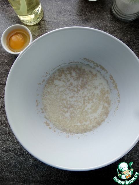 В тёплом молоке развести сахар и дрожжи. Оставить минут на 10.