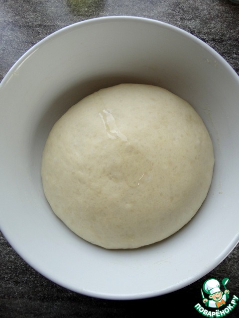 Когда тесто поднялось, его стоит ещё раз обмять, смочив руки в масле. Снова убрать в тепло для второго подъёма.